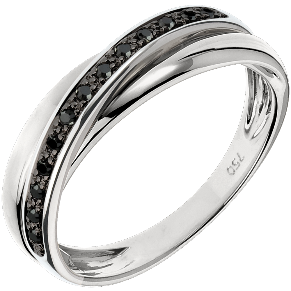 L'alliance équilibrée de anneaux or blanc soulignés d'un pavage diamants noirs.