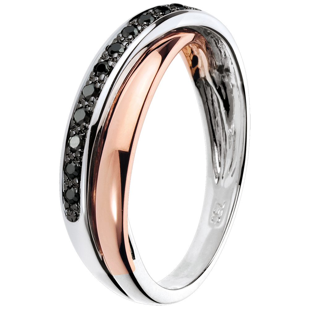 Anneau Saturne Diamant - diamants noirs - or blanc et or rose 18 carats