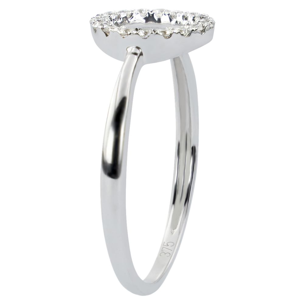 Une bague graphique et minimaliste, ourlée d'une pléiade de diamants. Un bijou dans l'air du temps, jeune et moderne.