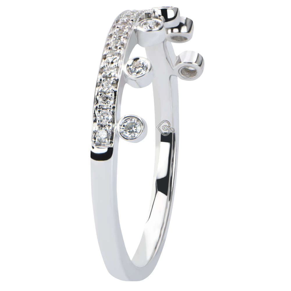 Le sacre des diamants avec cette monture majestueuse qui rappelle la noblesse des couronnes princières. Une célébration à la hauteur de la personnalité aimée.