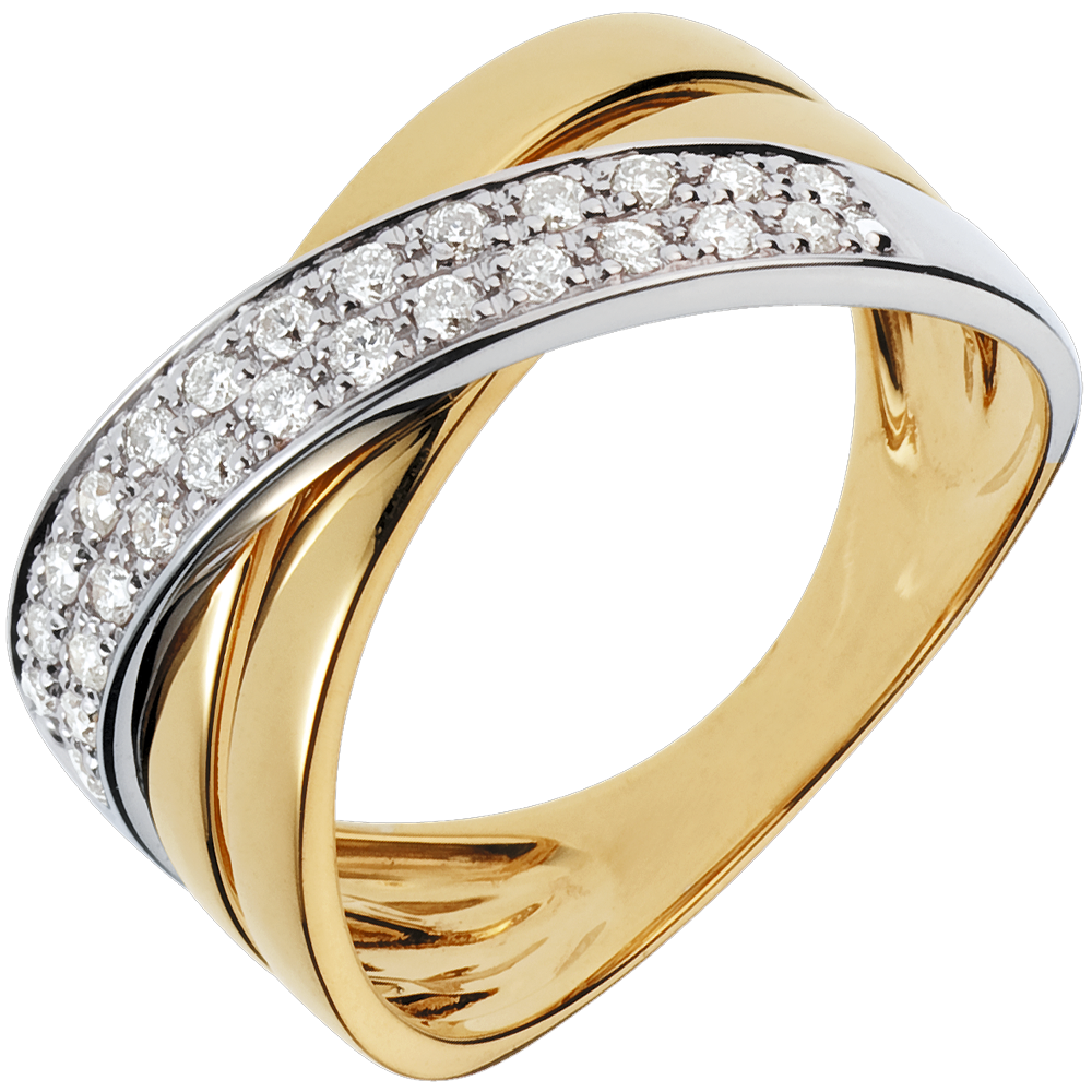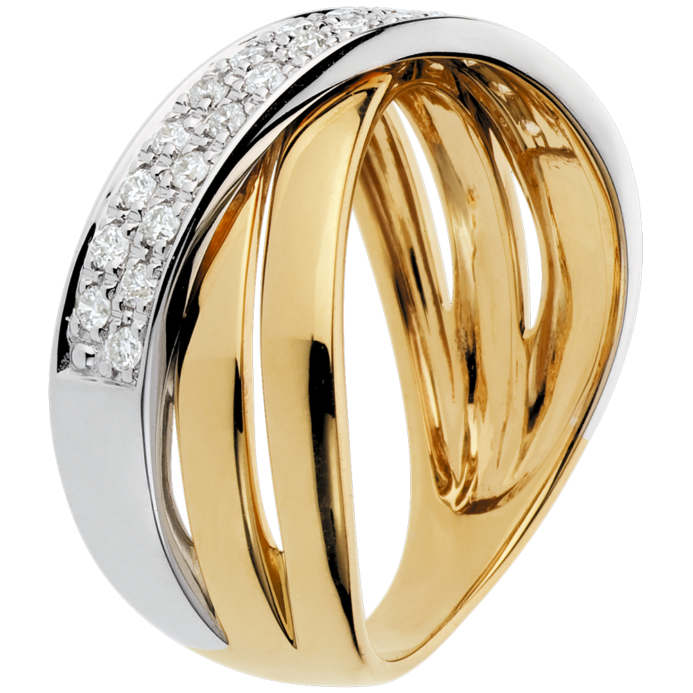 Bague Saturne large - 26 diamants 0.26 carat - or blanc et or jaune 18 carats