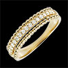Deux rangées de perles d'or encadrent un anneau de diamants surelevé. Pour une alliance hors du commun ou une bague qui combine raffiné et élégance. 17 diamants : 0.19 carat - Or jaune (18 carats = 750/-): 3.4 g. Plus dimensions