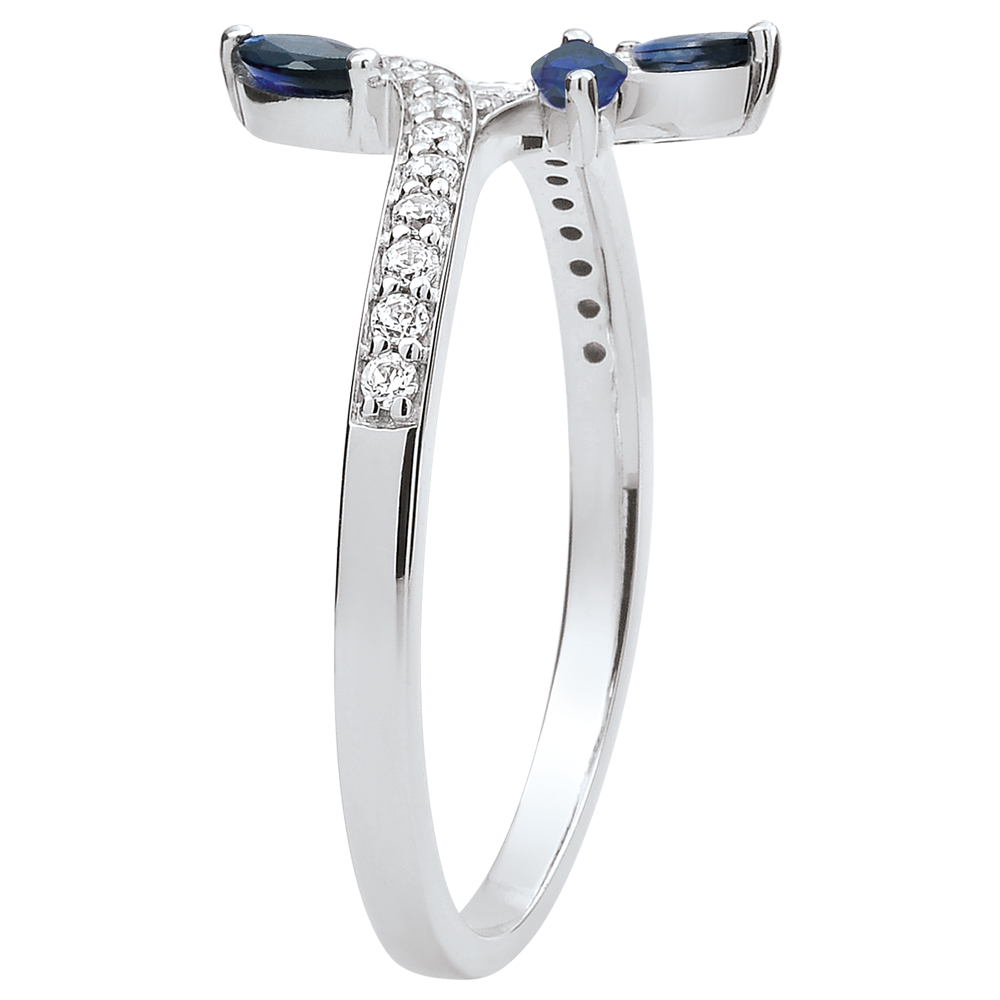 Bague Bois Mystérieux - or blanc 9 carats, diamants et saphirs navettes