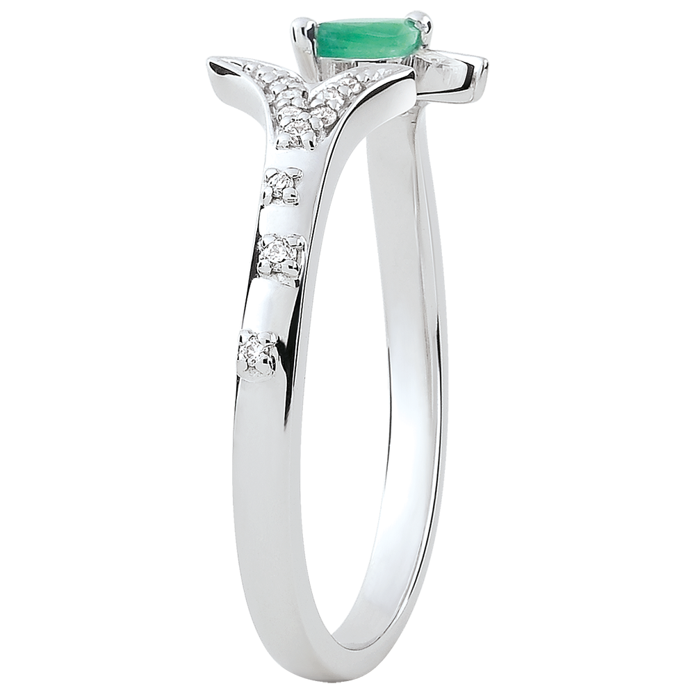 Bague Bois Mystérieux - petit modèle - or blanc 9 carats et émeraude navette