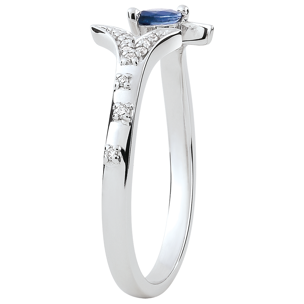 Bague Bois Mystérieux - petit modèle - or blanc 9 carats et saphir navette