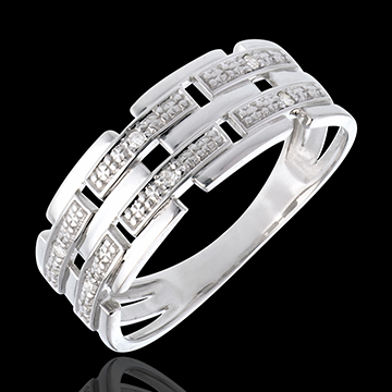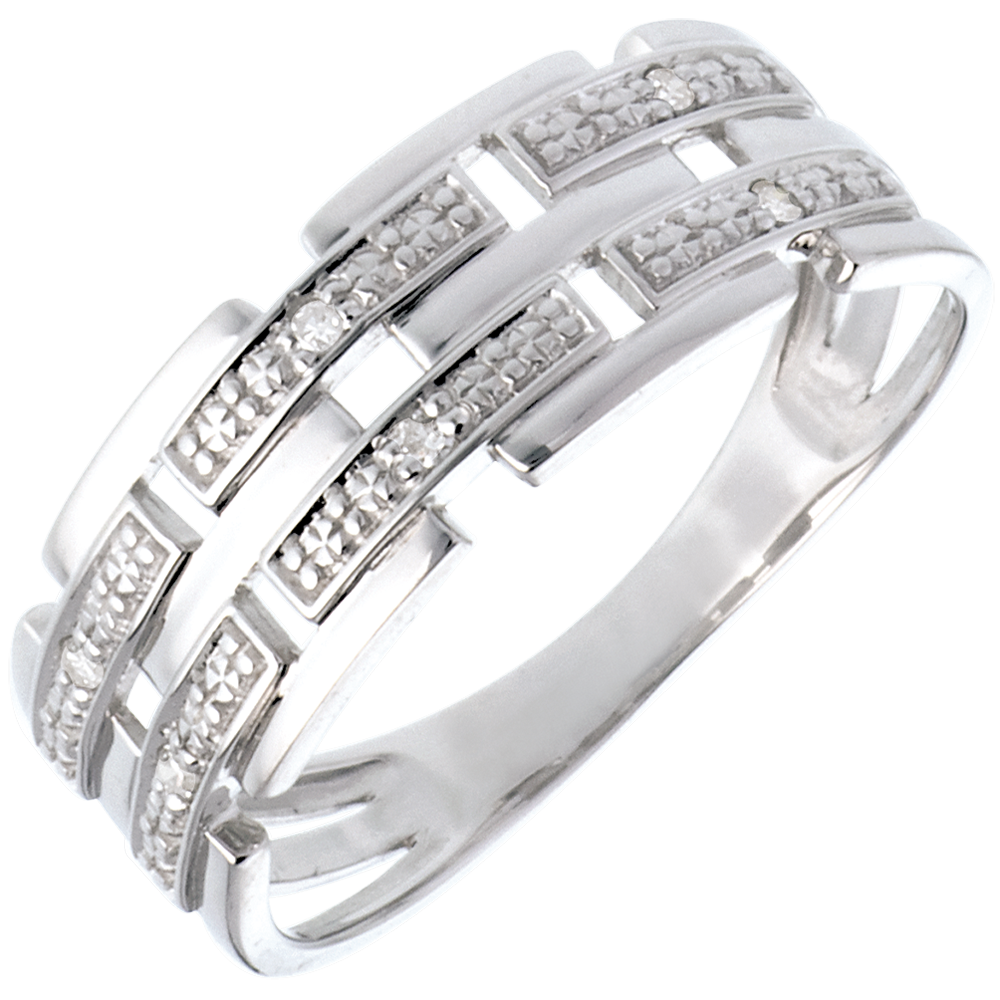 Bague canevas or blanc 18 carats pavée diamants - 6 diamants