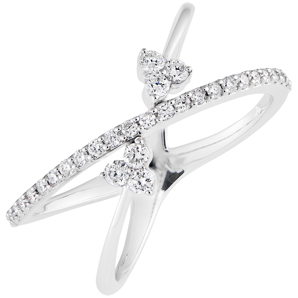 Une monture légère et contemporaine qui habille le doigt, composée de 2 élipses or blanc et pavée diamants.