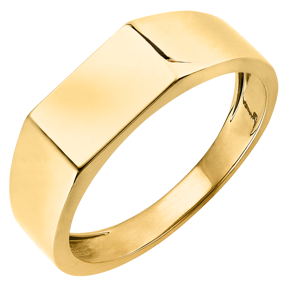 Une chevalière tout or jaune au plateau rectangulaire. Un bijou simple et élégant à la fois.