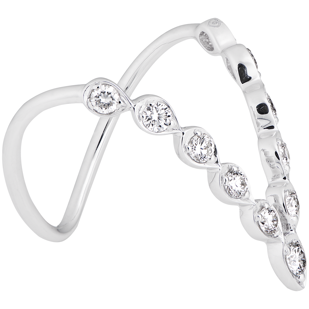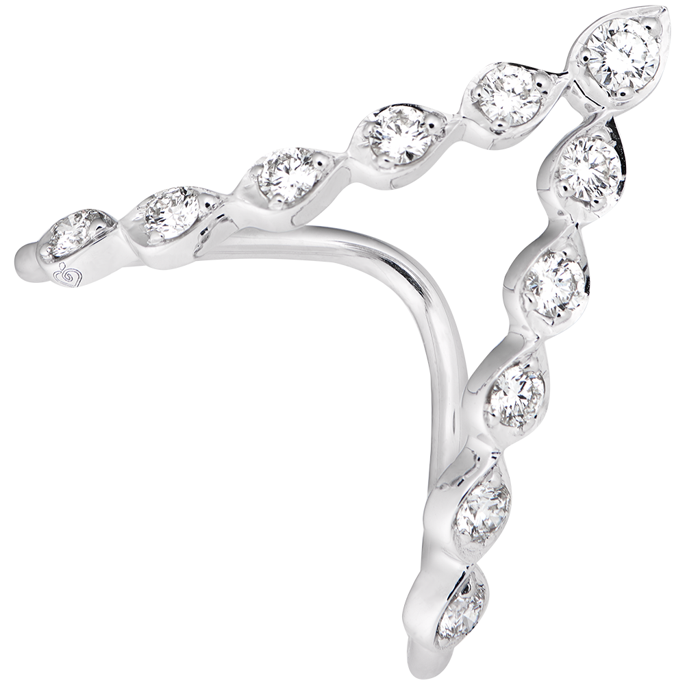 Une rivière de diamants qui se positionne sous la troisième phalange tel un ornement sur le haut de la main. Un effet majestueux et spectaculaire, pour ce bijou de caractère.