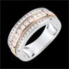 Trois rang de diamants sur de l'or rose créent un effet de volume radieux en jouant sur la taille des pierres.…
