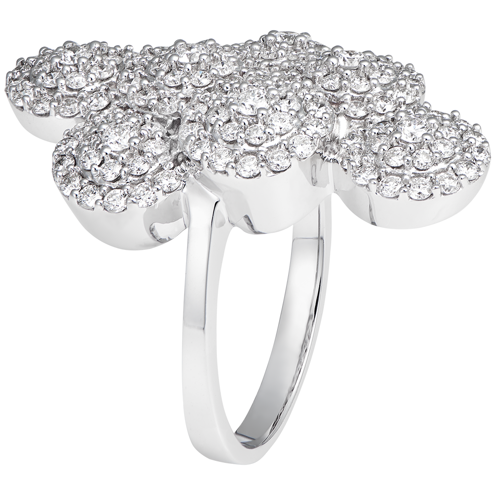 Une bague d'exception composée de pompons de halos de diamants. Une création de caractère dans les codes de la haute joaillerie.