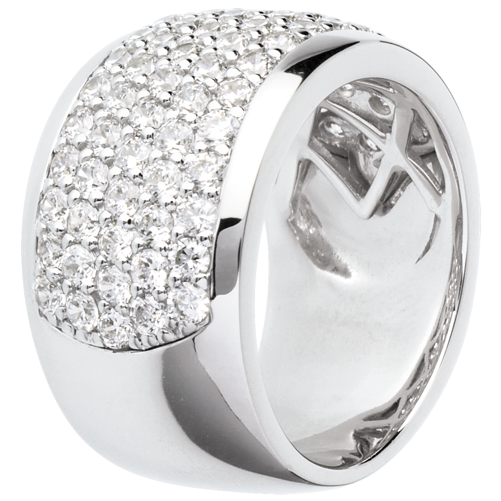 L'éclat iridescent d'un pavage diamants minutieux, pour une bague d'exception mêlant exception et raffinement.