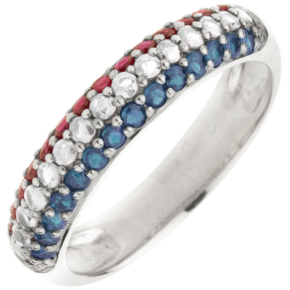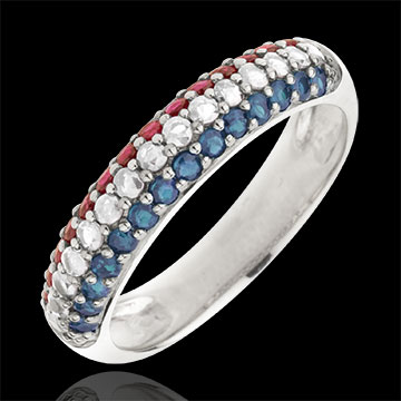 Bague Drapeau français - or blanc 9 carats, diamants et pierres précieuses
