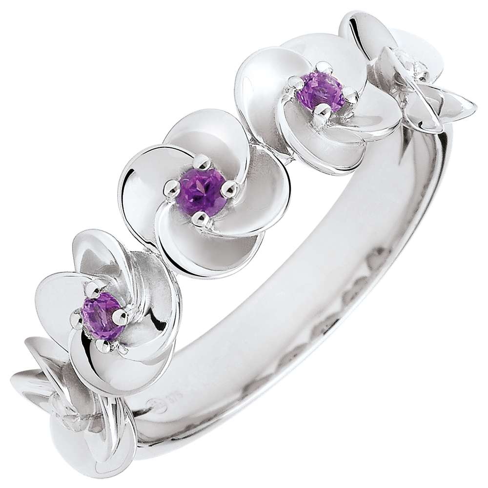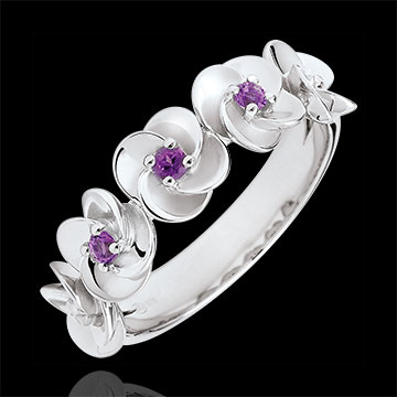 Bague Éclosion - Couronne de Roses - or blanc 9 carats et améthystes
