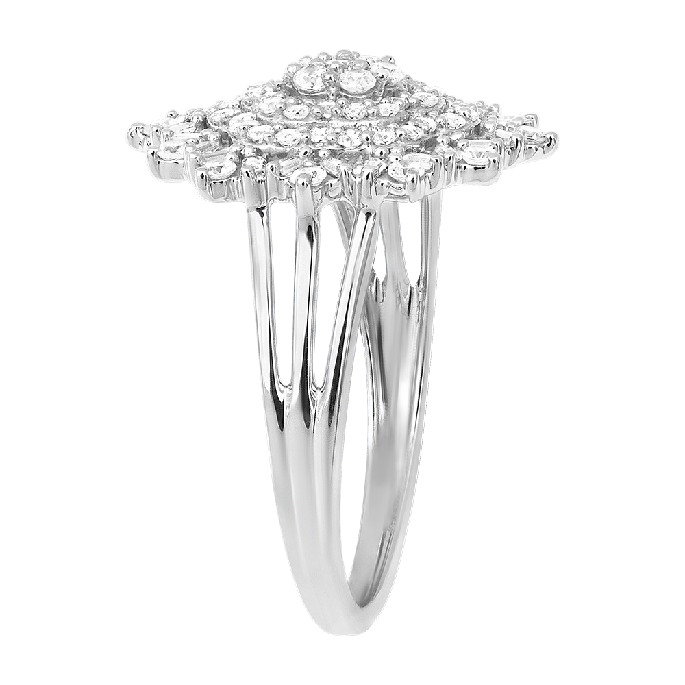 La bague Éden est un chef-d'œuvre de raffinement floral, magnifiquement sertie de 85 diamants blancs. Son design pavé évoque un jardin d'éclat éternel, rayonnant de lumière et de grâce. Confectionnée en or blanc 9 carats, cette bague large allie élégance et confort pour sublimer la main avec délicatesse. Un bijou précieux idéal pour un cadeau d'anniversaire ou une occasion spéciale, livré avec soin dans son écrin.… Voir plus Infos techniques