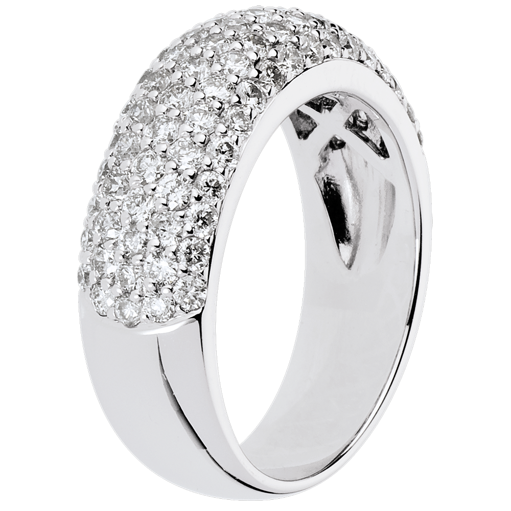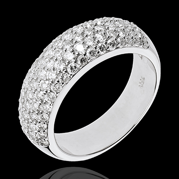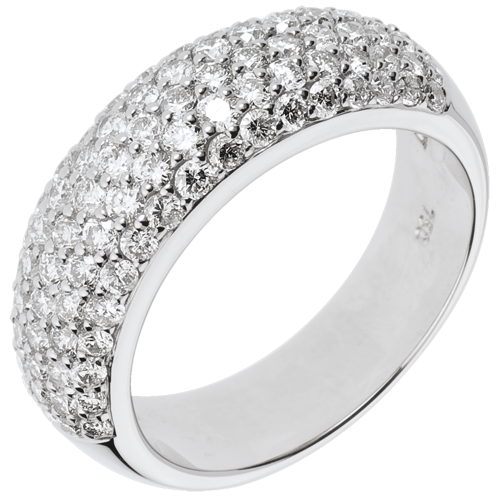 Sobre et élégant comme ce large anneau d'or blanc tout pavé de 5 rangs de diamants.