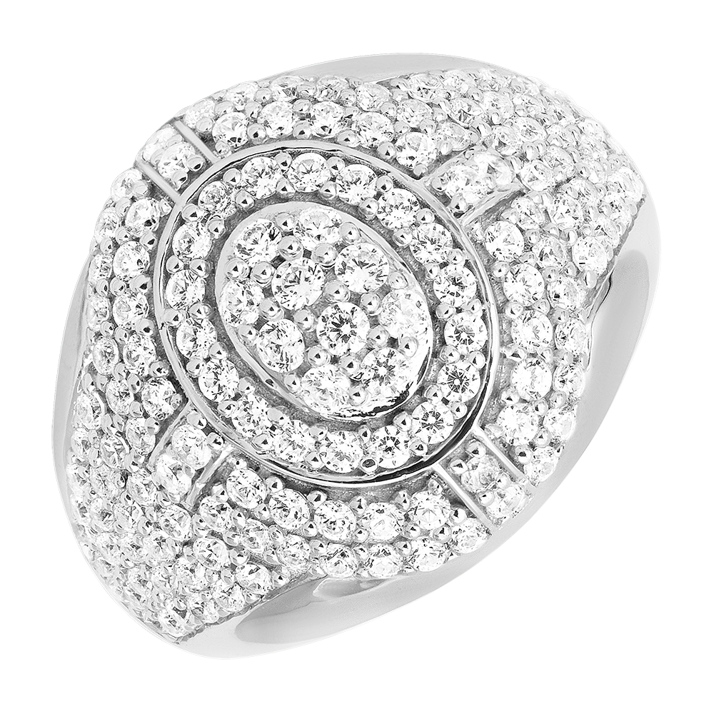La bague Élixir séduit par son design circulaire élégant, sublimé par un pavage de 140 diamants synthétiques d’un total de 1,29 carat.
