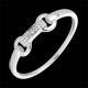 un mors pavé de diamants attaché à des rênes d'or blanc forme une délicate bague.