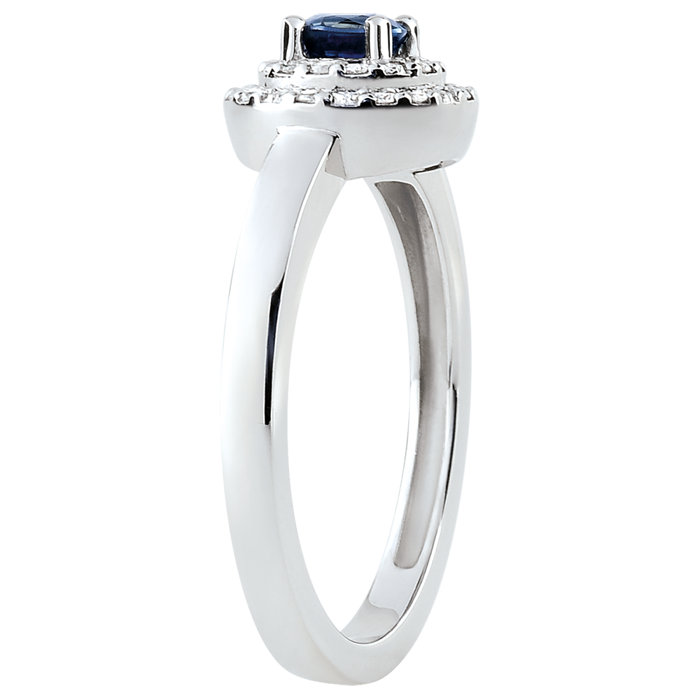 Bague de Fiançailles Destinée - Double halo - saphir 0.3 carat et diamants - or blanc 18 carats