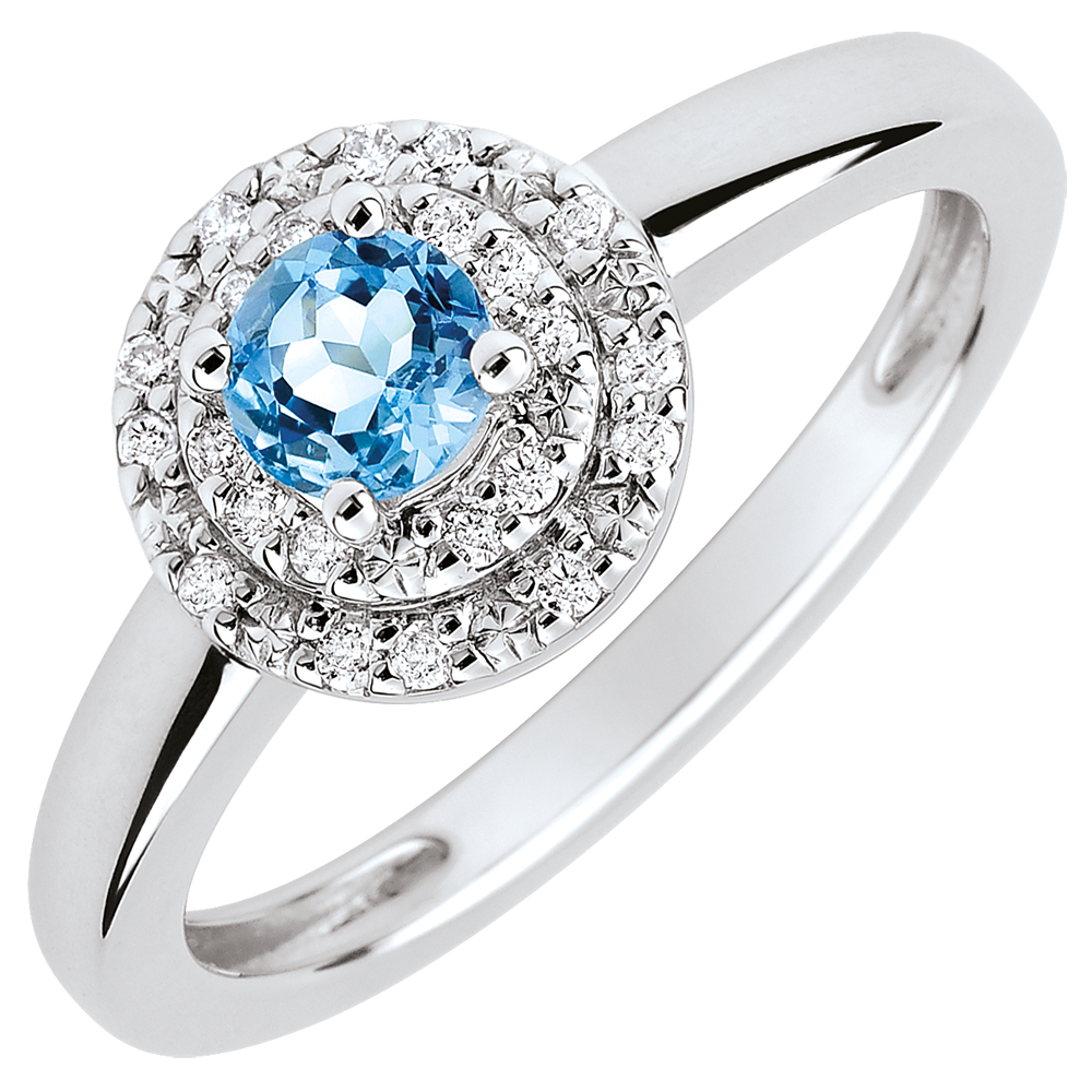Bague de Fiançailles Destinée - Double halo - topaze 0.3 carat et diamants - or blanc 18 carats