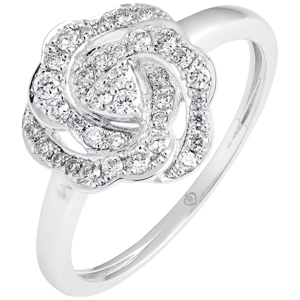 Edenly redessine les courbes des pétales de la rose dans une version pavée et ajourée, pour une version plus contemporaine et légère. 36 diamants : 0.25 carat - Or blanc (18 carats = 750/-): 2.5 g. Plus dimensions