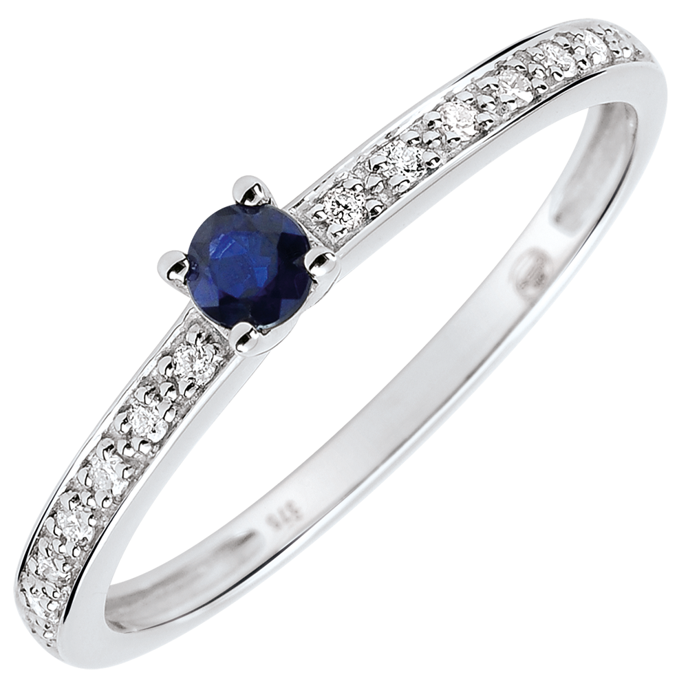 Pourquoi nous faire confiance ? ORIGINE Nº 119 Bague de Fiançailles Solitaire Boréale - saphir 0.12 carat et diamants - or blanc 18 carats