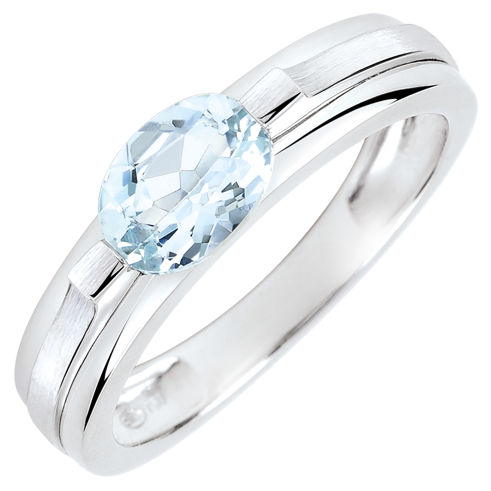 Bague de Fiançailles Victoire variation - aigue-marine 0.65 carat - or blanc 18 carats
