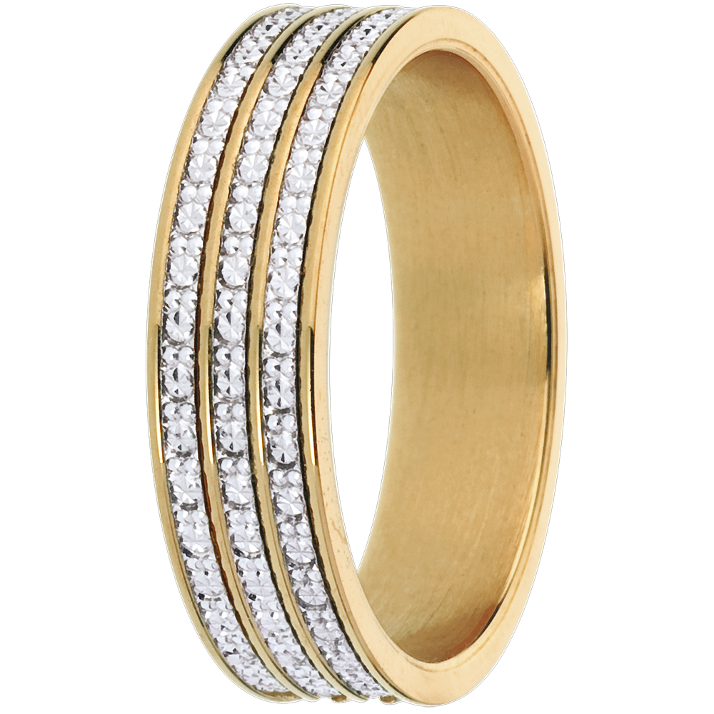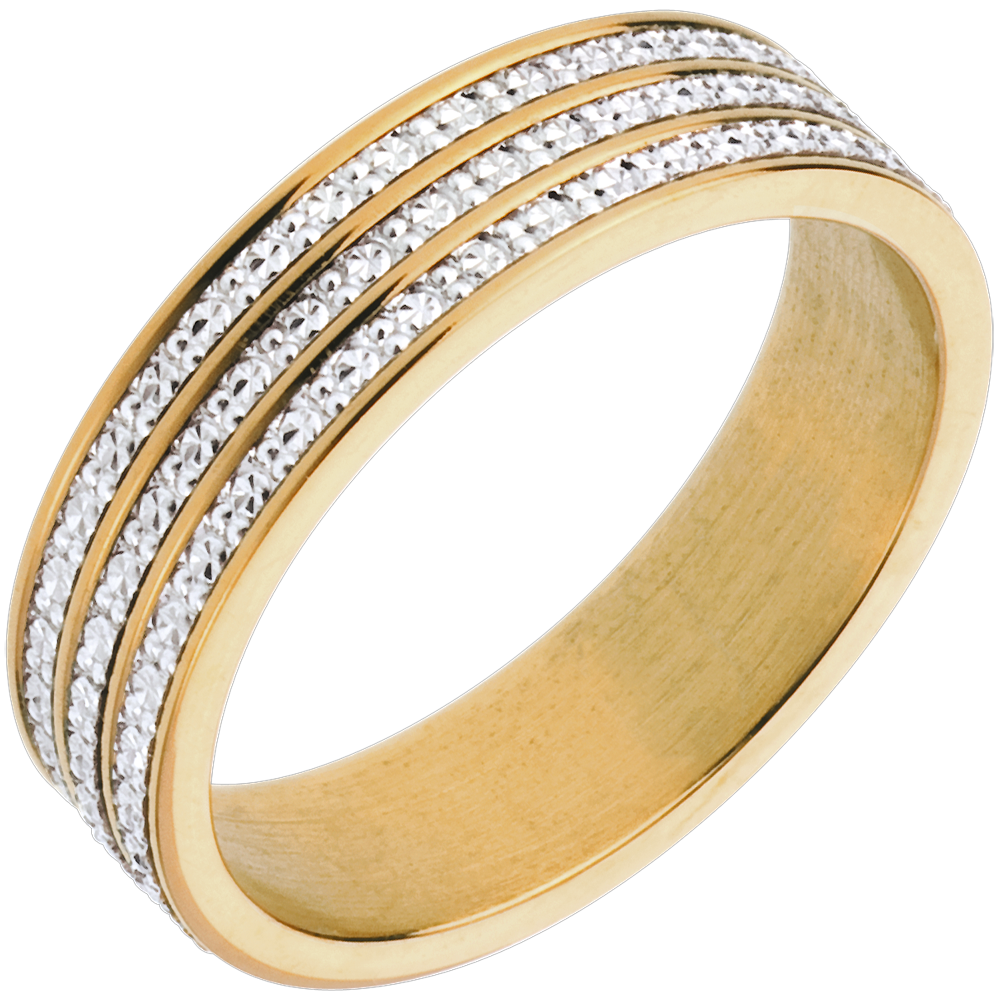 Trois rangs d'or blanc d'une grande finesse courent entre des lignes d'or jaune.