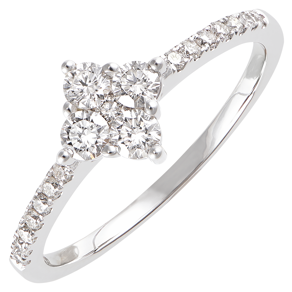 FRAICHEUR Nº 75Bague de fiançailles - Or blanc 9 carats - Cluster de diamants naturels ID : 4562