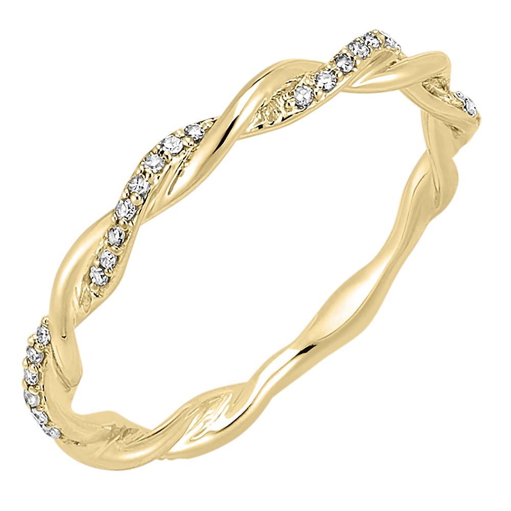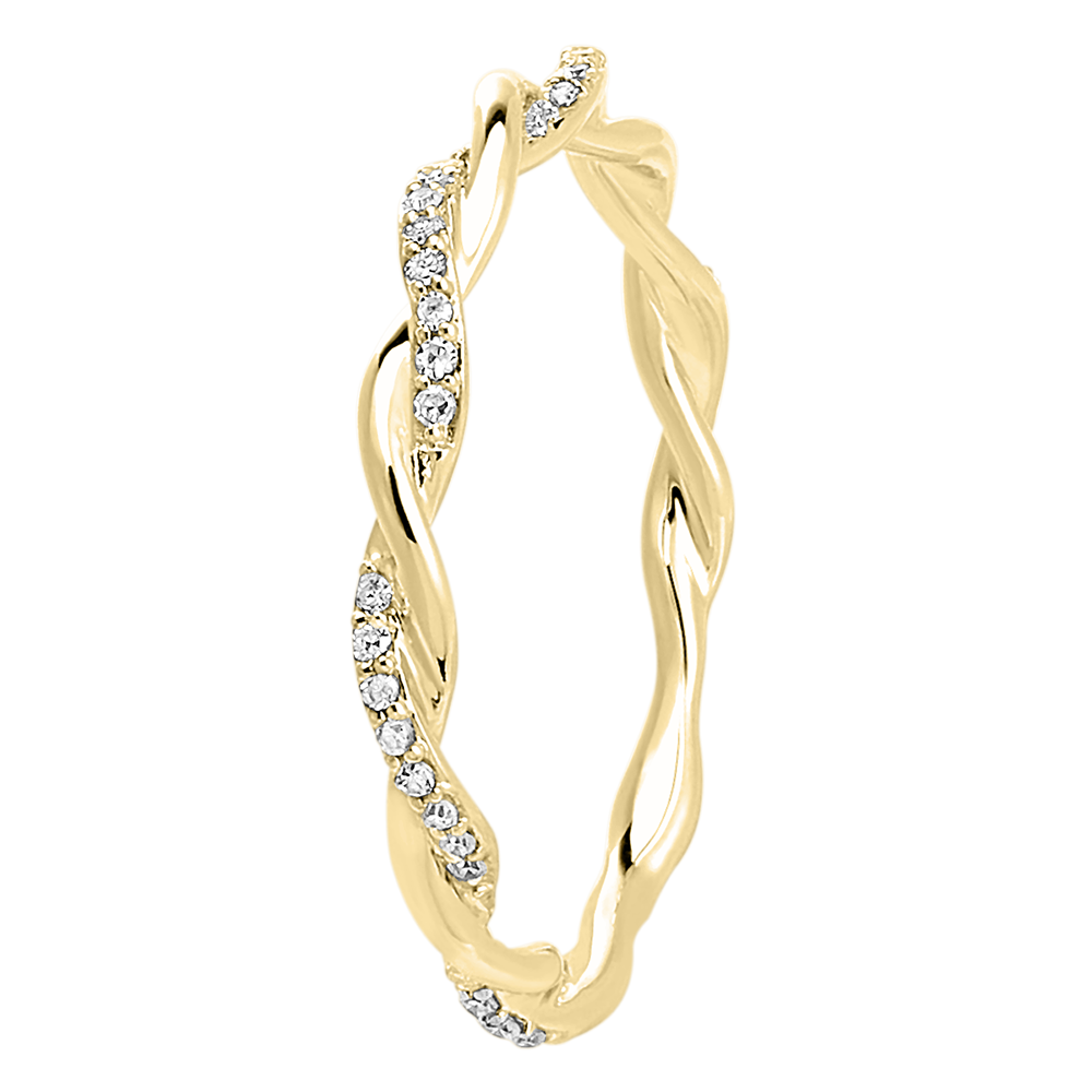 Un bague où deux fils d'or s'entrelacent, or jaune et or jaune pavé de diamants comme une étreinte éternelle.