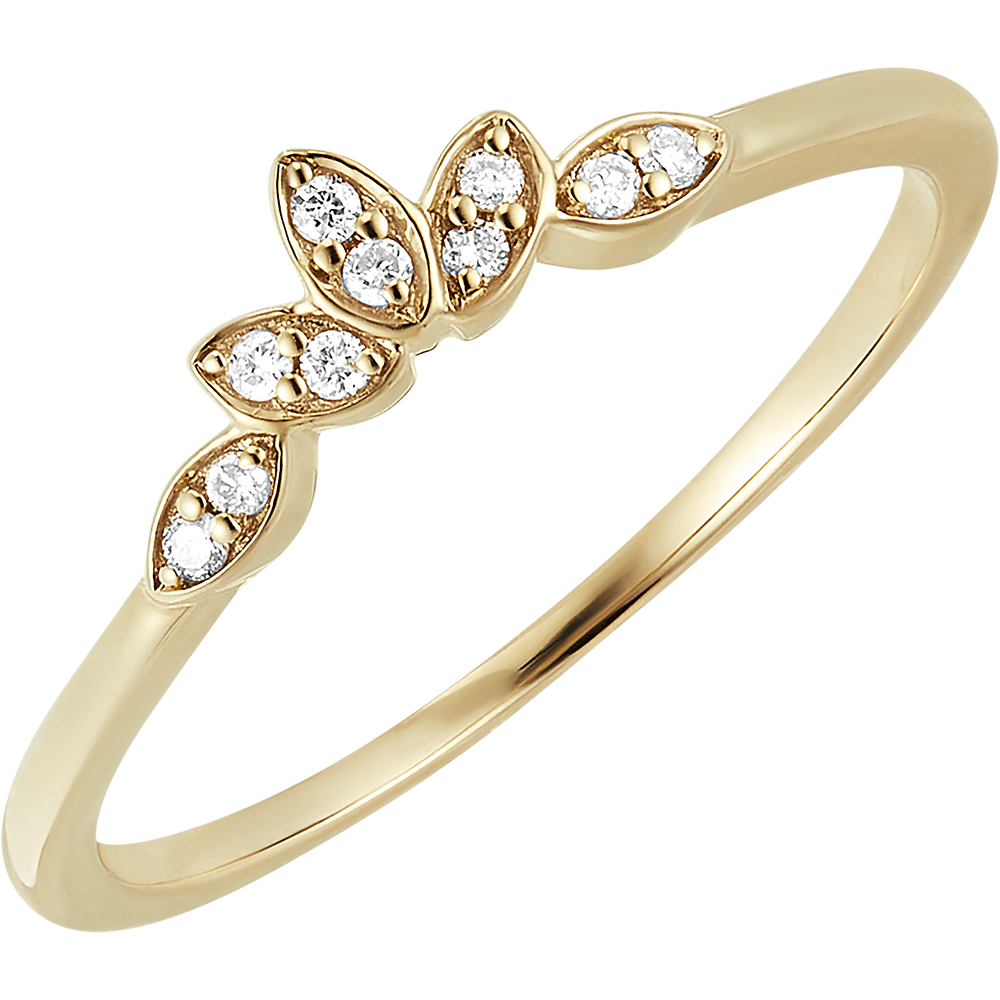 Une délicate couronne de pétales d'or pavées de diamants pour un ornement subtil et raffiné au doigt.