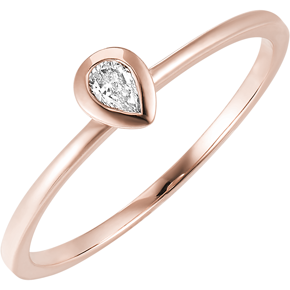 Découvrez une bague solitaire revisitée, élégamment sertie d’un diamant en forme de poire dans un serti clos. Son design épuré en or rose 18 carats met en valeur la finesse et la brillance du diamant.