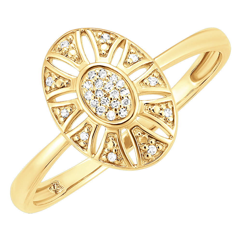 La bague Radiance captive par son design solaire : ses rayons en or jaune encerclent un coeur étincelant de diamants.