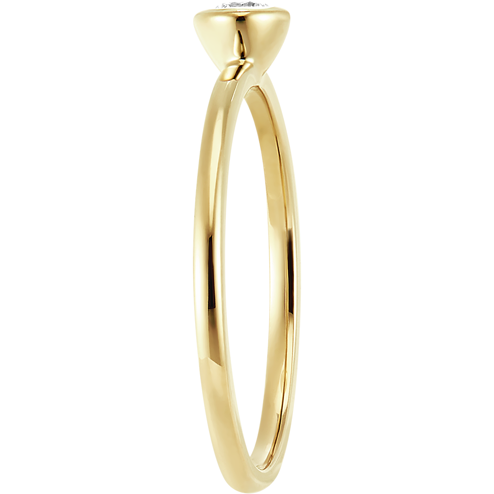 Design rond et épuré pour un port confortable et élégant Diamant 0.09 ct de qualité HSI, serti clos pour une sécurité optimale Or jaune 9 carats, garantissant durabilité et éclat chaleureux Collection Fraîcheur inspirée par la beauté naturelle, pour un style subtil