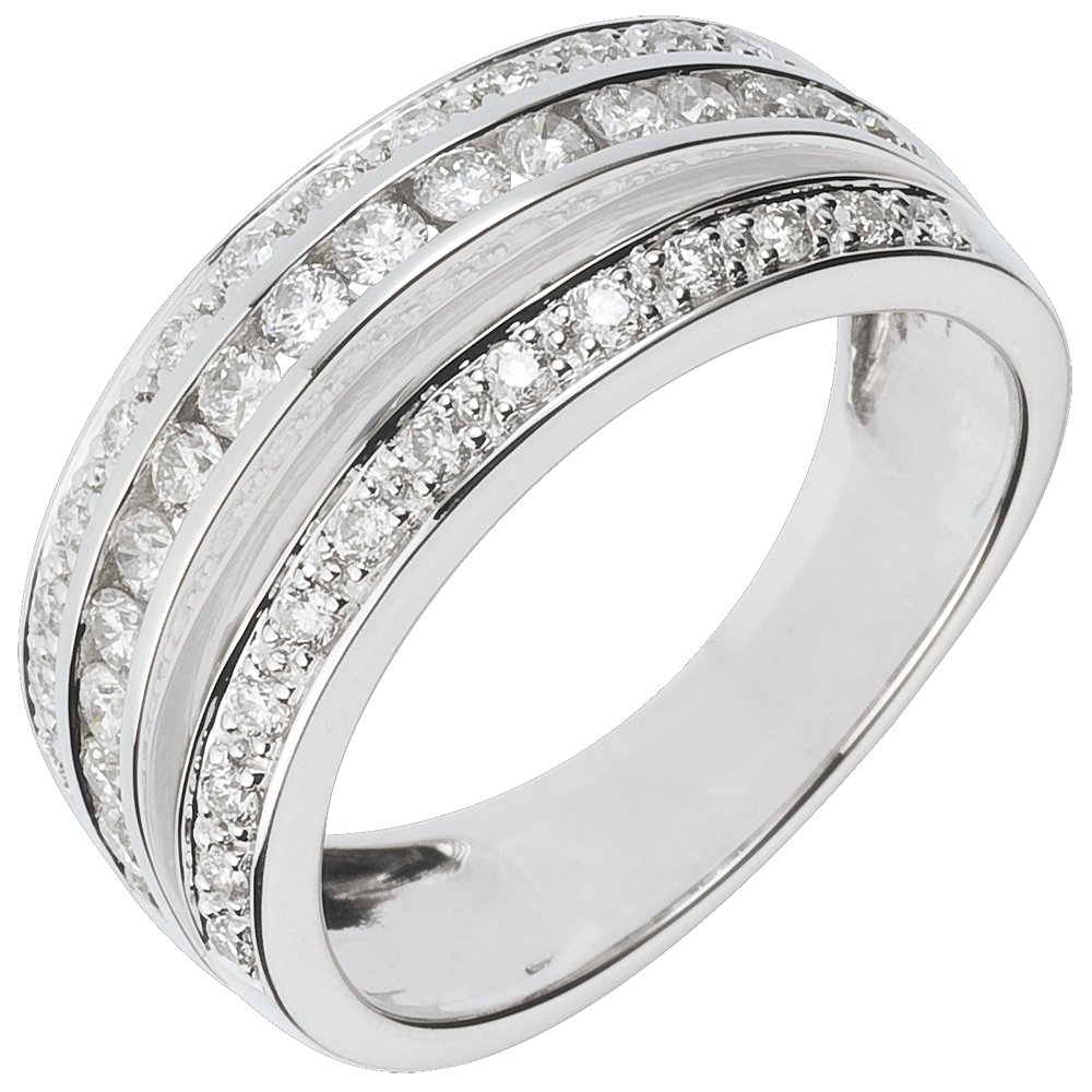 Riche et somptueuse comme une voie étoilée créée par ces rangs de diamants assemblés sur de l'or blanc.