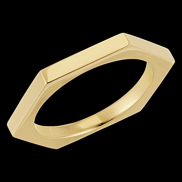 Cette bague homme minimaliste en or jaune est inspirée de la forme hexagonale des alvéoles de la ruche. Son design épuré et moderne en fait une pièce de joaillerie intemporelle. Or jaune (9 carats = 375/1000): 5.4 g. Plus dimensions