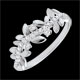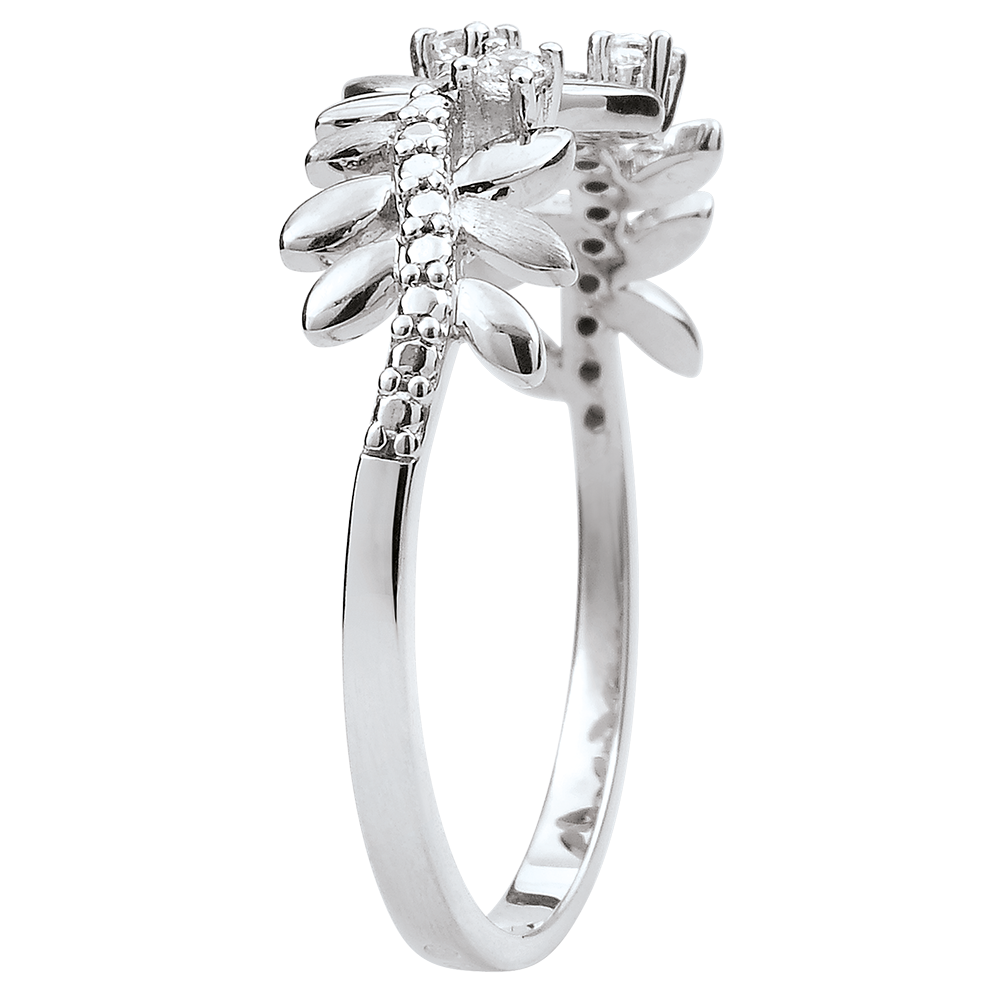 Une alternance de feuilles d'or blanc brillantes et de feuilles d'or brossées à la main pour une bague romantique sertie de 9 diamants. 9 diamants : 0.1 carat - Or blanc (9 carats = 375/1000): 1.6 g. Plus dimensions