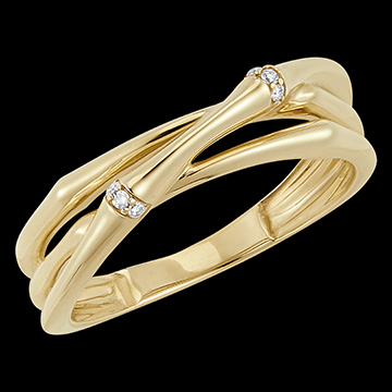 Bague Jungle Sacrée 2 rangs entremêlés multi diamants- or jaune 9 carats