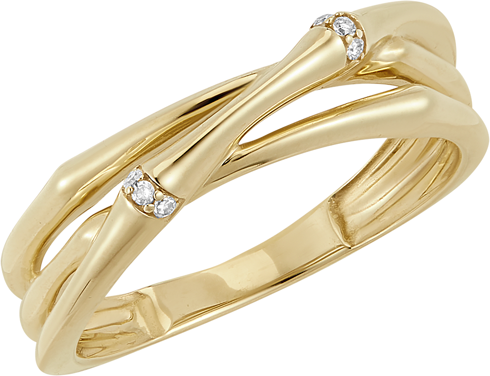 Une branche de bambou souple et solide entremêlée entre elle se métamorphose en une bague éternelle. Les nœuds du bambou sont incrustés de diamants dans l'or.