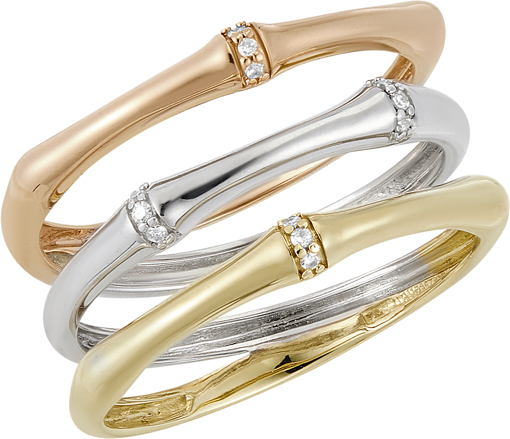 Une branche de bambou souple et solide grimpe le long du doigts pour se métamorphoser en une bague éternelle. Les nœuds du bambou sont incrustés de diamants dans l'or.