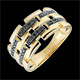 Trois lignes d'or en pointillés sont séparées par des pointillés de diamants noirs. Une Bague Clair Obscur moderne et féminine.