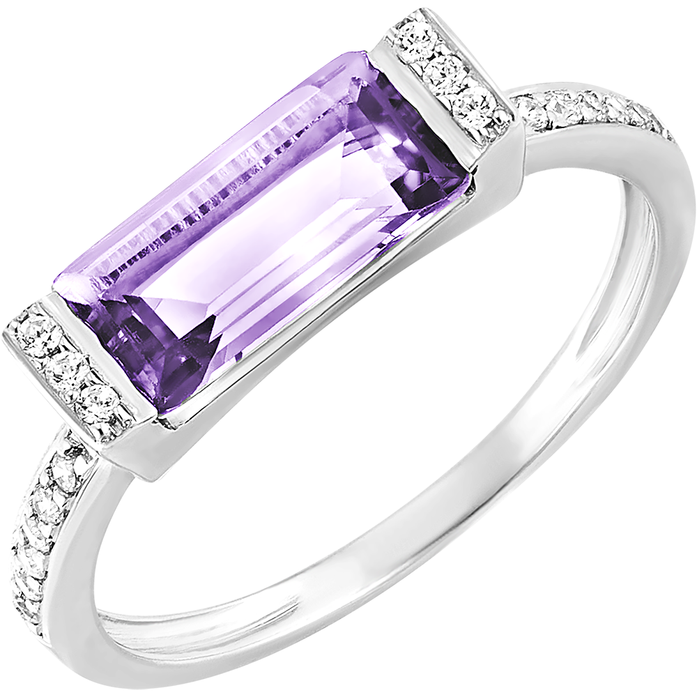 Bague Oiseau de Paradis - Enchantée - or blanc 9 carats, améthyste et diamants