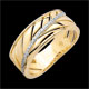 Une bague large en or jaune toute en légèreté inspirée de la feuille de palme. Sa tige principale est ornée d'une rivière de diamants. Une bague à porter tous les jours ou pour les grandes occasions. 5 diamants : 0.02 carat - Or jaune (18 carats = 750/-): 4.3 g.Plus dimensions