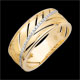 Une bague large en or jaune brossé toute en légèreté inspirée de la feuille de palme. Sa tige principale est ornée d'une rivière de diamants. Une bague à porter tous les jours ou pour les grandes occasions. 5 diamants : 0.02 carat - Or jaune (18 carats = 750/-): 4.5 g.Plus dimensions