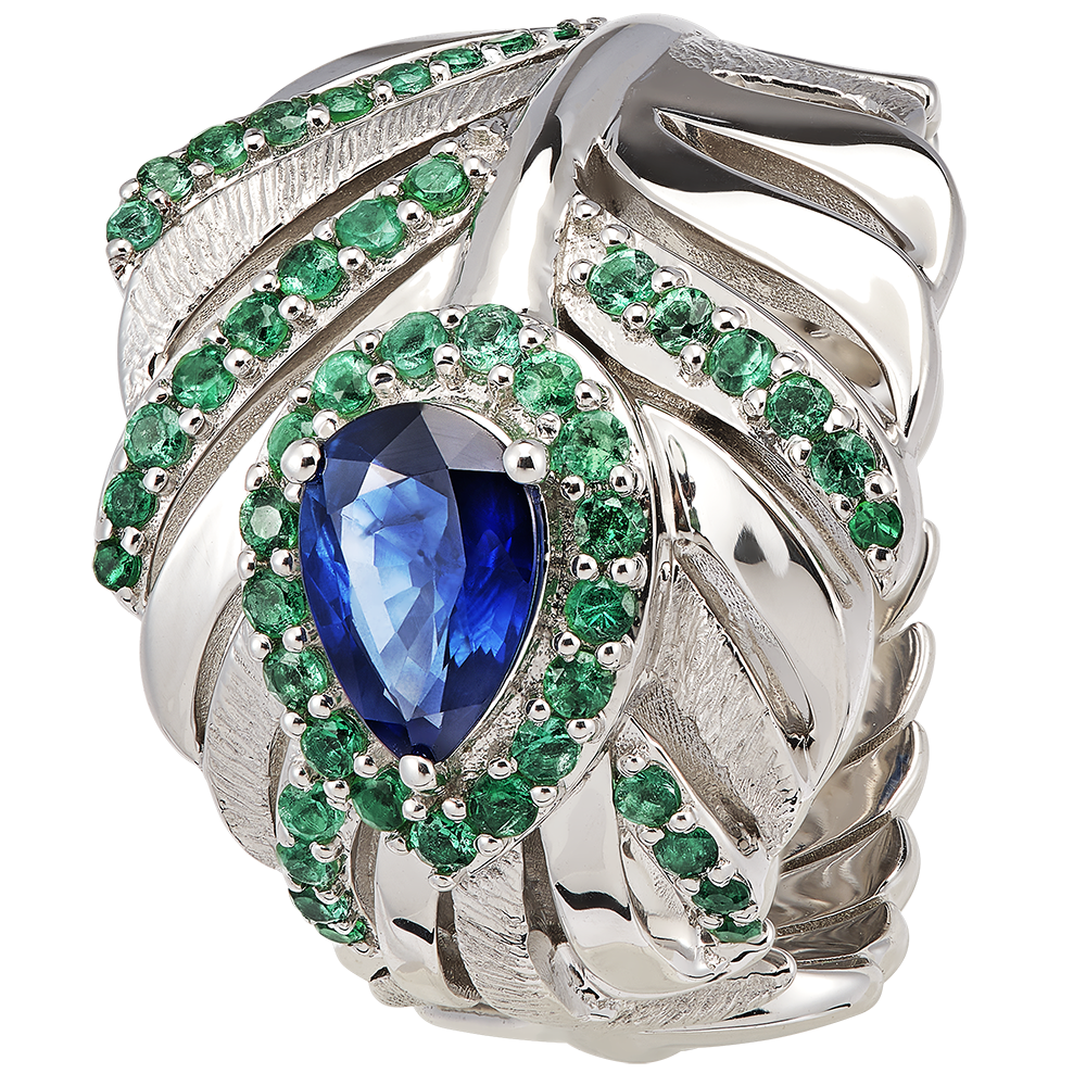 Bague Panache - Impériale - or blanc 18 carats avec saphirs et émeraudes synthétiques
