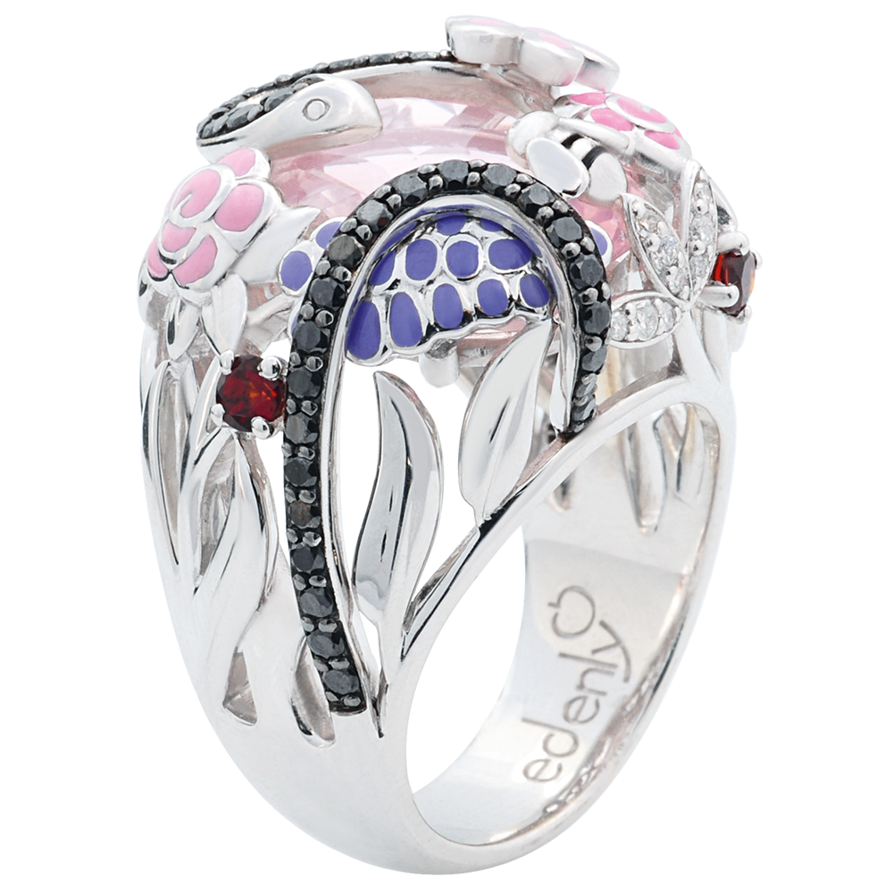 Bague Balade Imaginaire - Paradis rose - Argent, diamants et pierres fines
