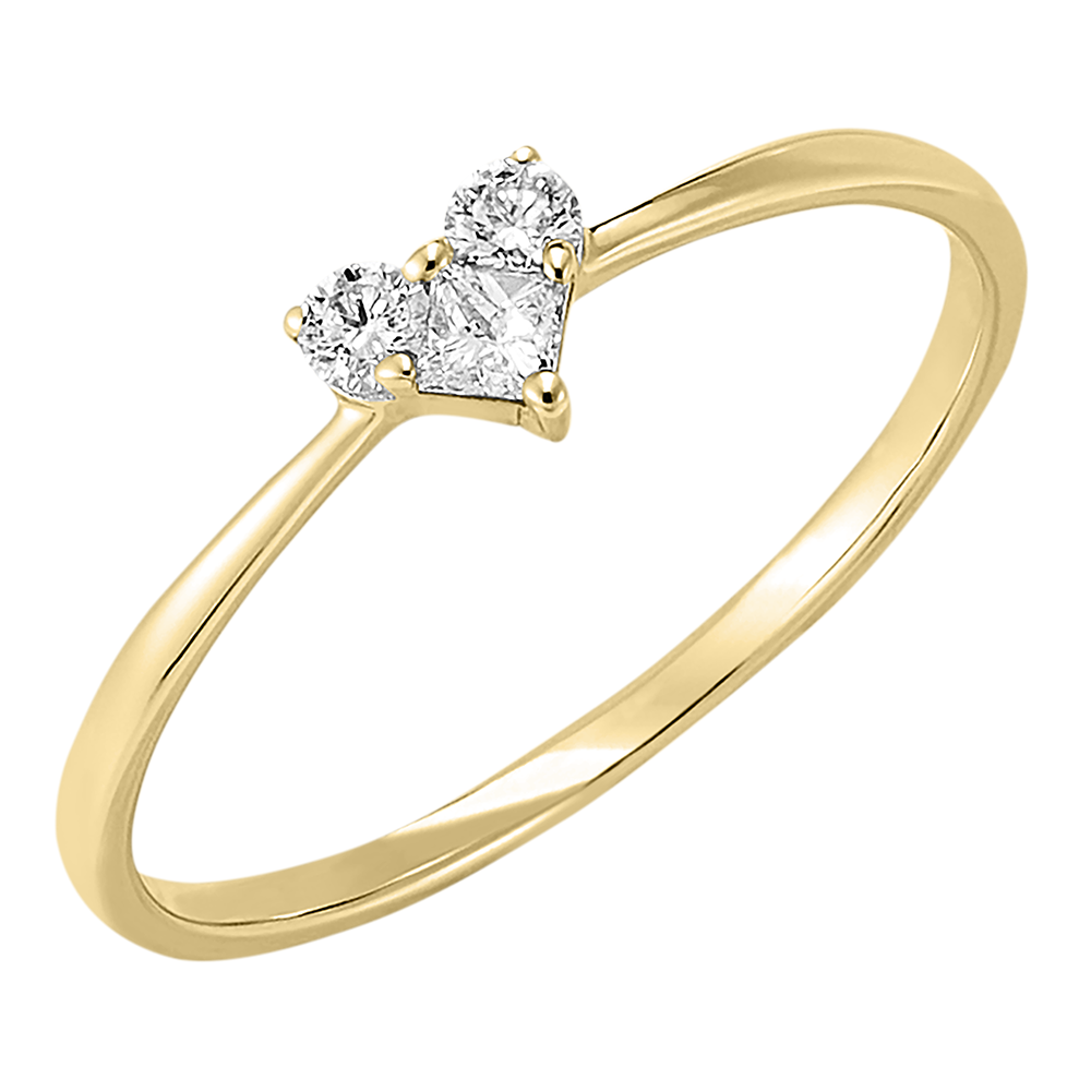 Un mini cœur pavé de 3 diamants délicatement posés sur un anneau or jaune. Cet icone de la joaillerie est revisitée par Edenly avec poésie pour une déclaration d'amour des plus intenses. Oh, mini lovely! Taille motif 3.8 x 4.2mm. 3 diamants : 0.14 carat - Or jaune (9 carats = 375/1000): 0.8 g. Cluster de diamants naturels : 3 - Plus dimensions