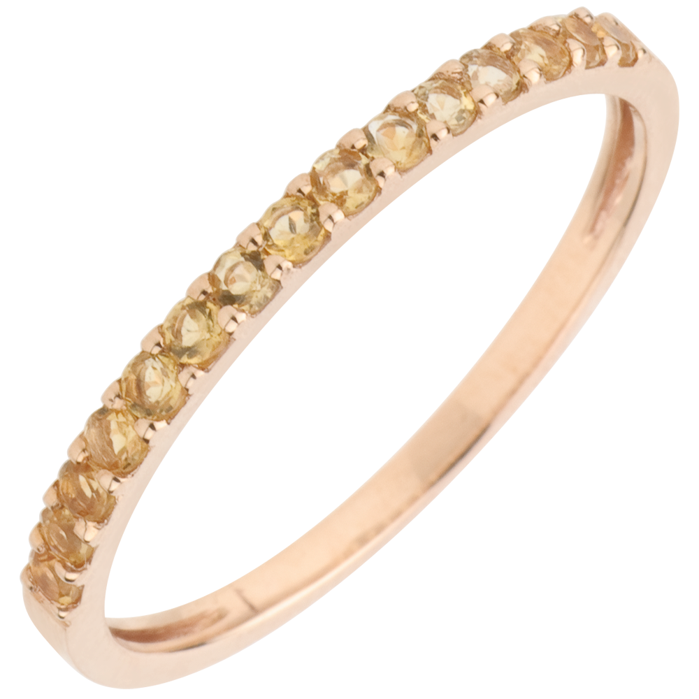Découvrez l'élégance discrète de cette bague en or rose 9 carats, sertie de 15 citrines jaunes d'un poids total de 0,23 carats. Son design classique à un rang met en valeur la finesse et la luminosité des pierres. Inspirée par la collection Oiseau de Paradis, cette bague évoque la délicatesse et la richesse colorée d’un envol d’oiseaux exotiques, parfaite pour sublimer toute tenue avec subtilité. Légère et raffinée, elle incarne la symbolique de l’union et se prête aussi bien à un usage quotidien qu’à une occasion spéciale.… Voir plus Infos techniques