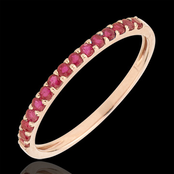 Bague Oiseau de Paradis - un rang - or rose 9 carats et rubis