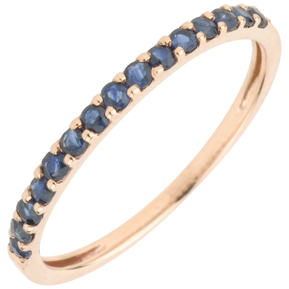 Bague Oiseau de Paradis - un rang - or rose 9 carats et saphir bleu